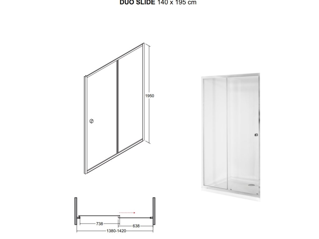 Tabulka rozměrů sprchových dveří Duo Slide