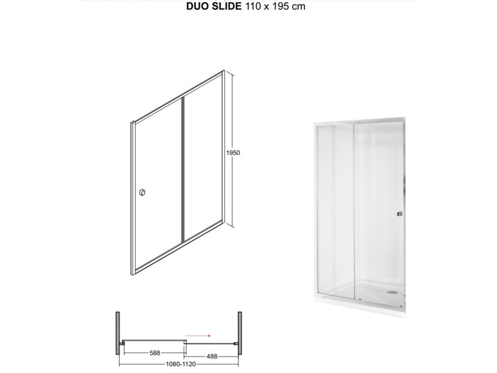 Tabulka rozměrů sprchových dveří Duo Slide