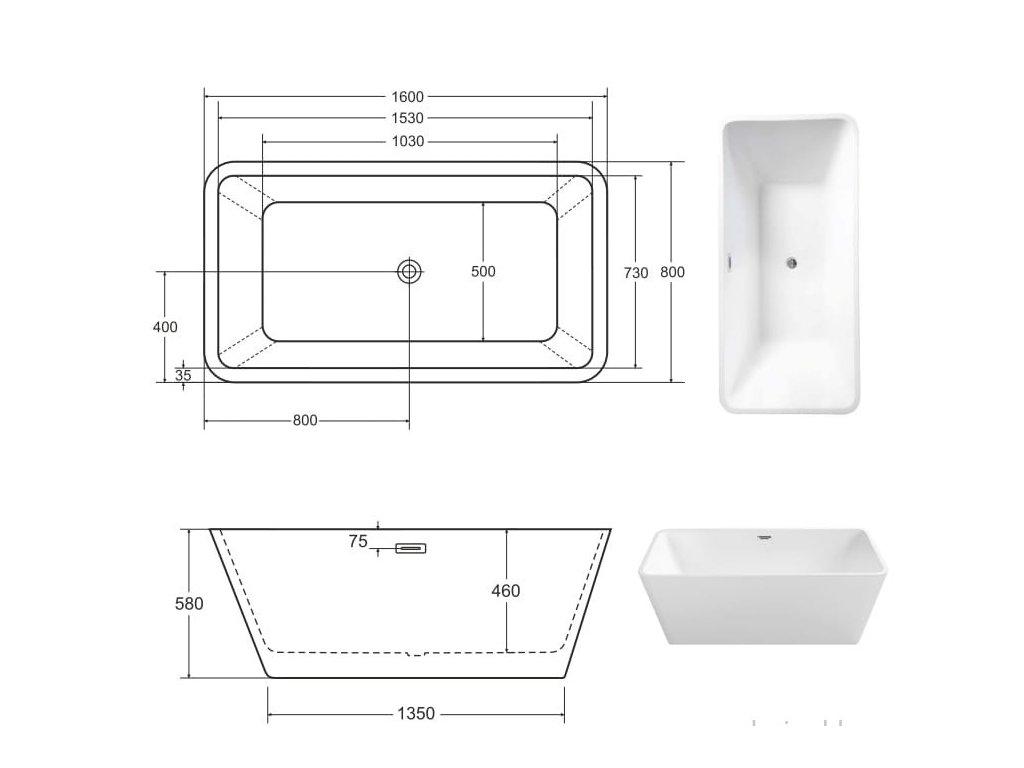 Besco Evita 160 volně stojící akrylátová vana, WAS-160-E