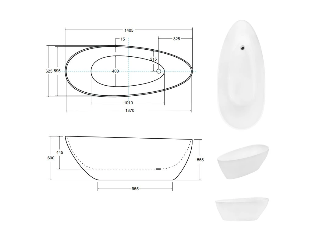 Besco Goya XS White volně stojící vana 140x62, litý mramor, WMD-140-G