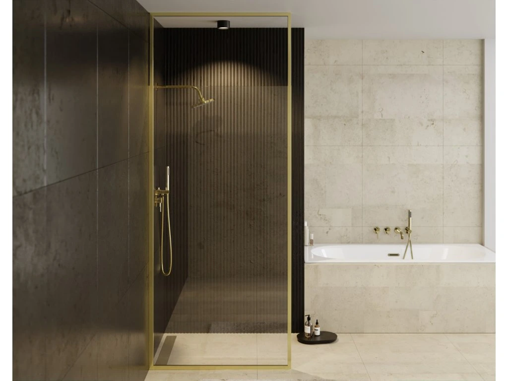 - sprchový kout Walk In s designovým provedením zlatých profilů (zlatého rámu)