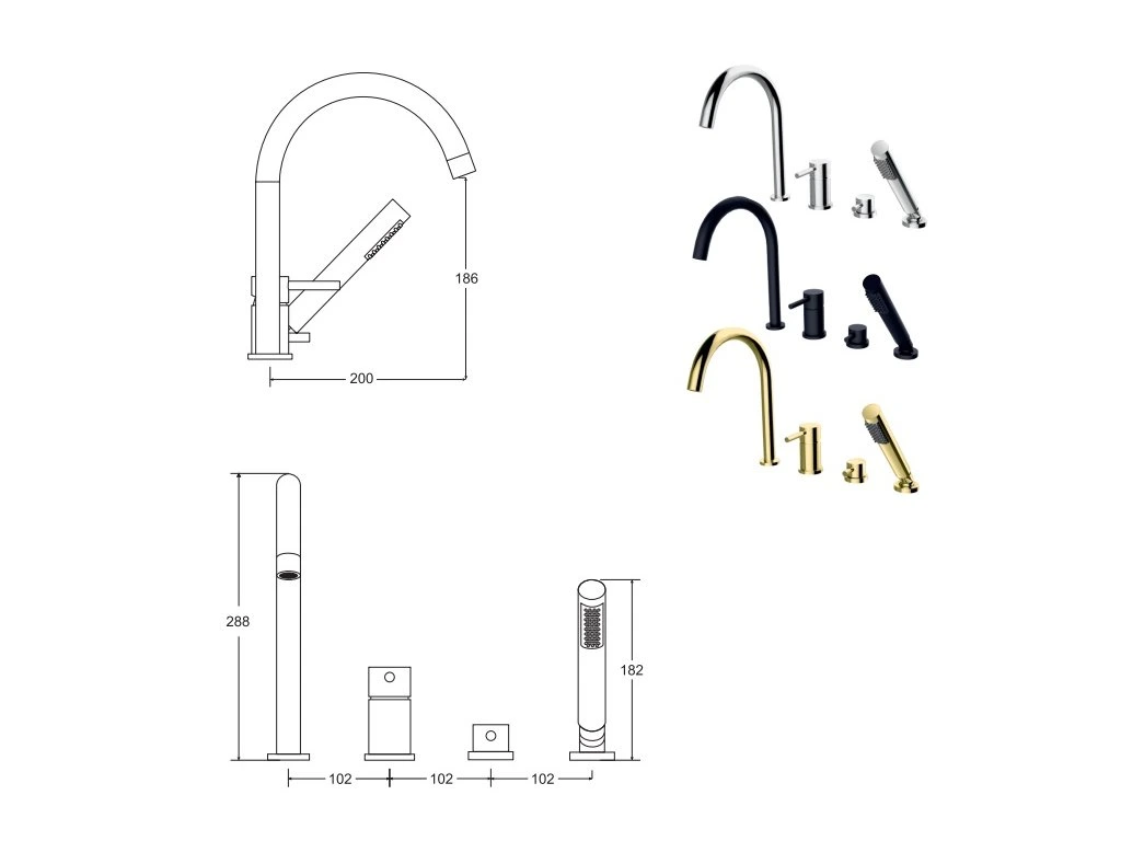 - součástí - hadice, ruční sprcha, baterie, napouštěcí hubice, přepínač
