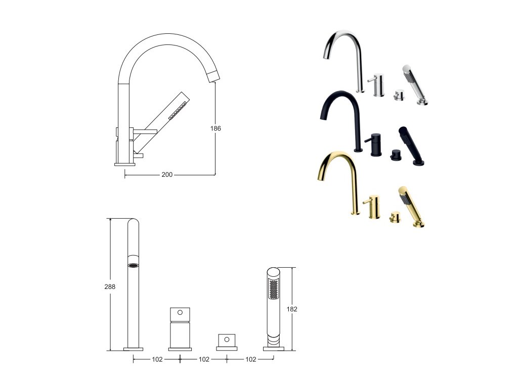 • součástí - hadice, ruční sprcha, baterie, napouštěcí hubice, přepínač