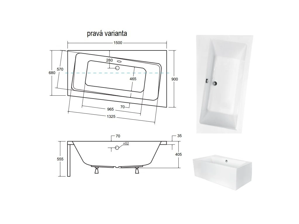 - součástí vany není sifon - lze dokoupit klasický za 249,- Kč nebo automatický sifon za 385,- Kč