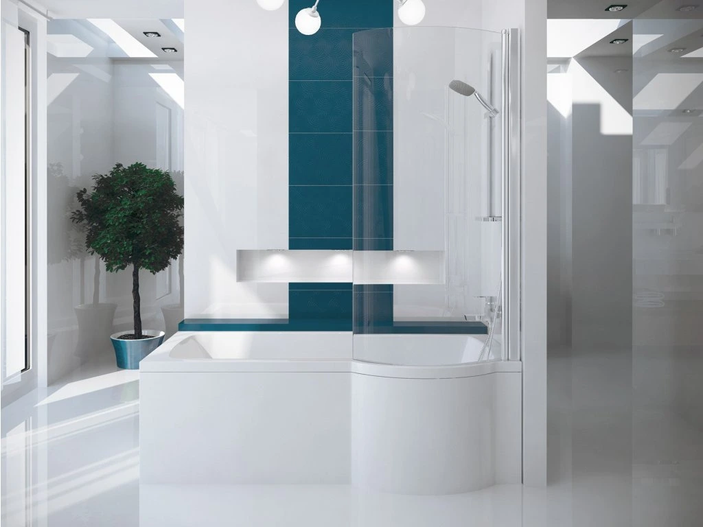 Designová vana v atypickém tvaru ze 100% akrylátu. Díky svému ojedinělému tvaru kombinuje možnost pohodlné klasické koupele, i pohodlného sprchování, které díky tvarované vanové zástěně zabraňuje nežádoucímu rozstřiku vody. Velmi kvalitní 100% akrylát zajišťuje stálou barevnost, vysokou pevnost, dlouholetou životnost a vynikající tepelně izolační vlastnost. Příjemně lesklý povrch usnadňuje údržbu a mytí. Všechny tyto vynikající vlastnosti činí vanu velmi oblíbenou. Součástí je vanová zástěna, vyrobena z kvalitního bezpečnostního skla o síle 5 mm a chromovým obvodovým profilem.