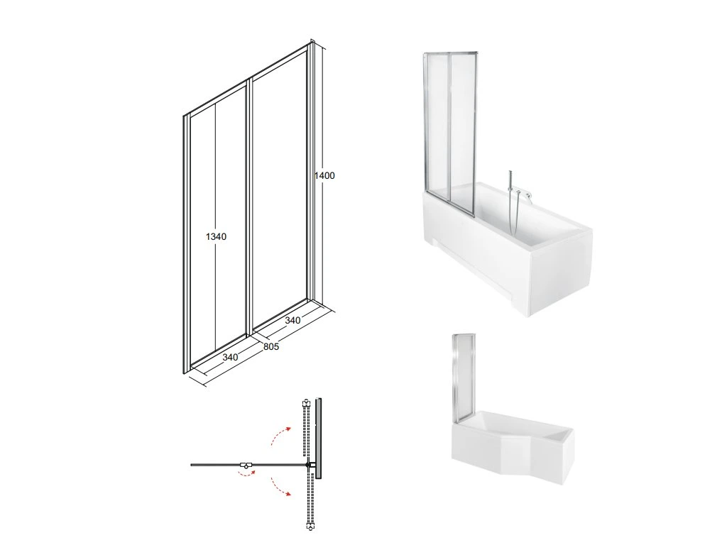 Specifika u akrylátové vany Integra s dvoudílnou zástěnou
