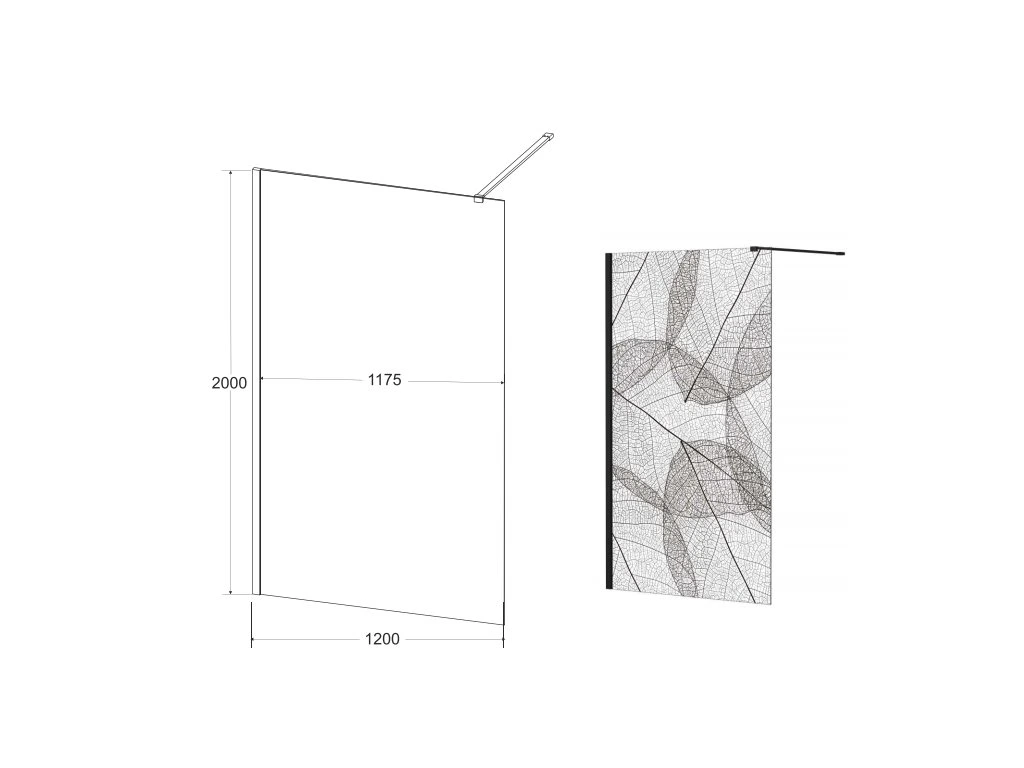 Tabulka rozměrů sprchového koutu walk in Leafy