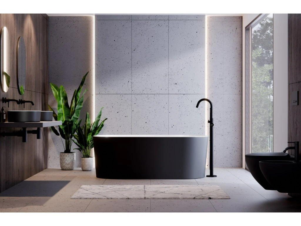 Besco Lova B&W lesk volně stojící vana 160x74, litý mramor, WWM-160LBKS