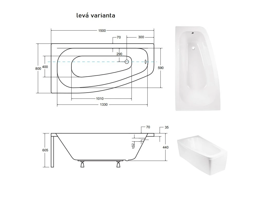 Besco Luna 150x80 akrylátová vana Délka vany: 150cm, Orientace: Levá, WAL-150-NL