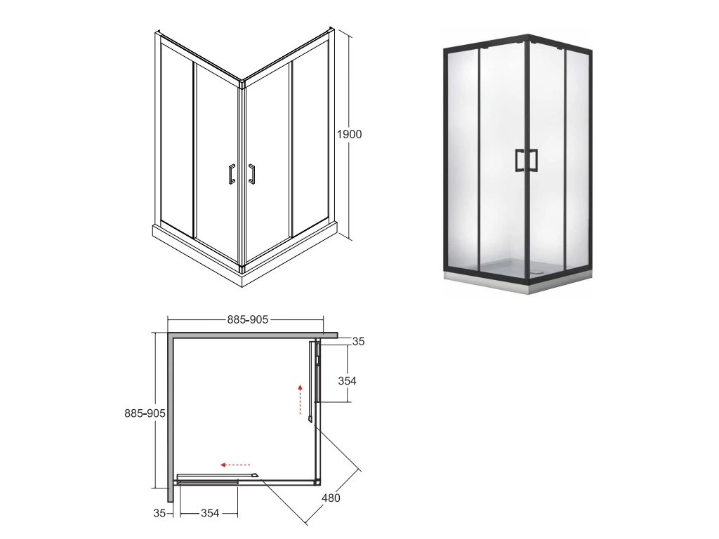 - šíře vstupu u rozměru 80 cm - 41 cm, šíře vstupu u rozměru 90 cm - 48 cm