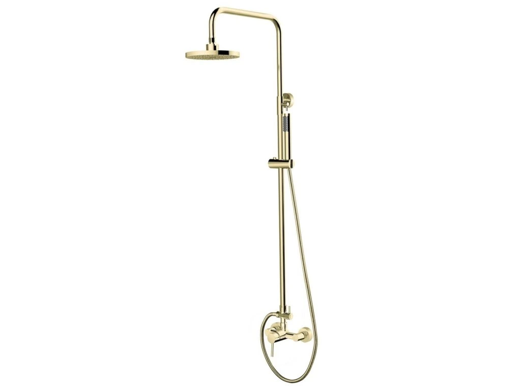Jedinečný nástěnný sprchový set s příslušenstvím DECCO/ILLUSION v zlaté lesklé barvě s elegantními zaoblenými tvary.