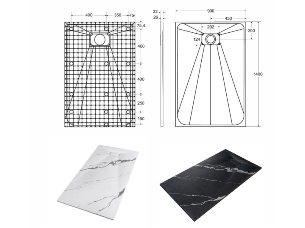 Elegantní ultratenká sprchová vanička VEXO MARBLE ČERNÁ je vyrobena ze speciálního SMC materiálu. Dodává se včetně sifonu, ale bez nožiček. Krytka sifonu je součástí balení.