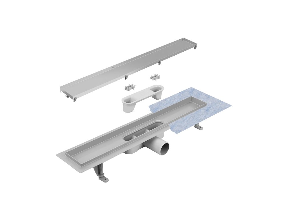 Kvalitně a moderně zpracovaný odtokový žlab, vyroben kombinací pevného plastu a roštu s povrchovou úpravou "kartáčovaný chrom" obohatí každou koupelnu o nádech luxusu. Sada obsahuje: žlab se sifonem a nožičkami, rošt a hydroizolační pásku.