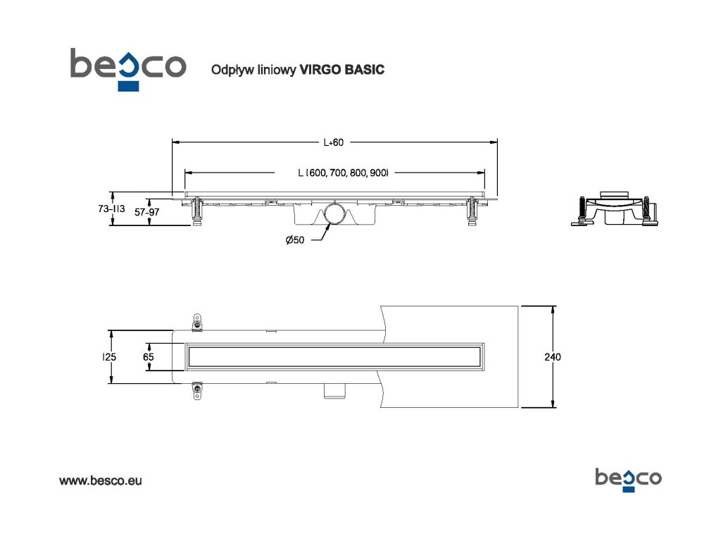 BESCO Odtokový žlab VIRGO BASIC DUO s roštem 2v1 Rozměr A - 70 ZLOL70VB