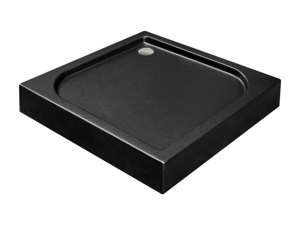 Samonosná čtvercová sprchová akrylátová vanička OSKAR STONE EFFECT s integrovaným čelním panelem pro Vaši koupelnu. Prvotřídní ABS akrylát zaručuje vysokou odolnost proti poškození. Povrchová úprava imituje povrch kamene a je v moderní černé barvě. Vanička je ve dvou rozměrech pro klasické rozměry sprchových koutů 91 × 91 cm a 80 × 80 cm.  Vanička včetně integrovaných čelních panelů, bez sifonu.