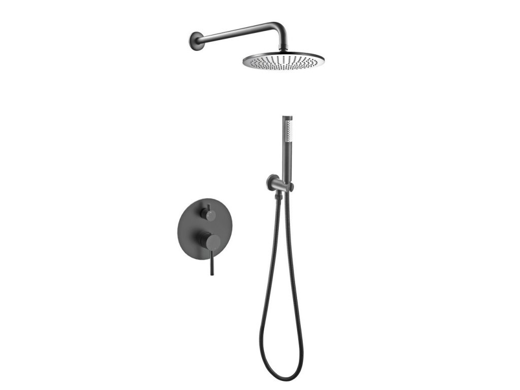 - Set obsahuje podomítkovou baterii, hlavovou sprchu s držákem, vývod ze stěny s držákem, ruční sprchu a hadici