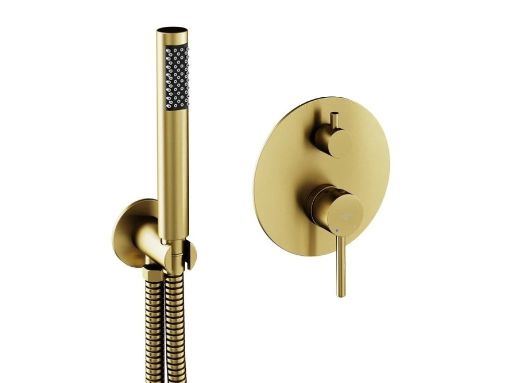 Spojením současného minimalismu s klasickými detaily vznikla série baterií VEO. Součástí balení VEO zlatá broušená barva je podomítková baterie VEO + podomítkový modul + ruční sprcha + sprchová hadice + vývod a držák ruční sprchy.