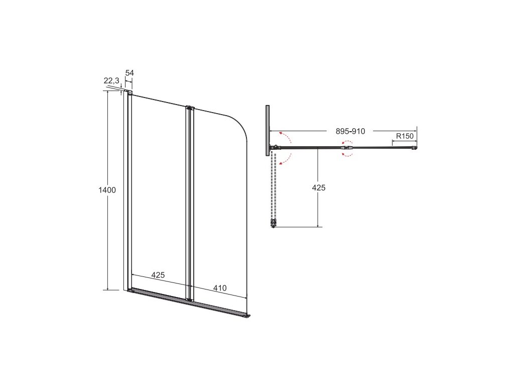 Besco Prime 2 dvoudílná vanová zástěna, PNP-2S