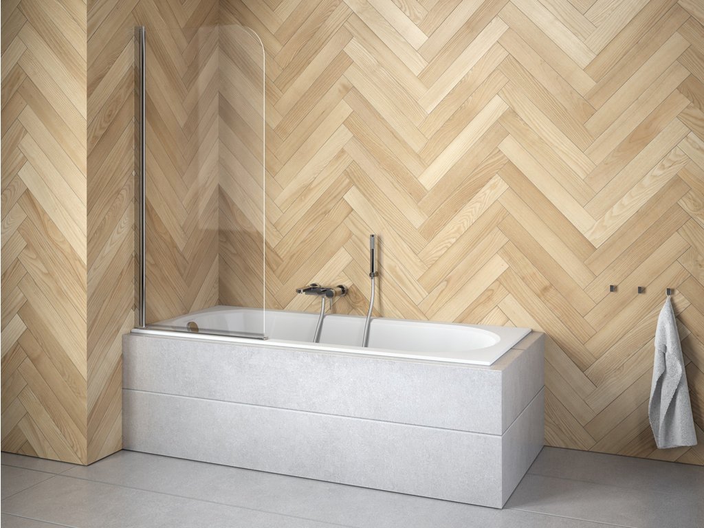 - designová vanová zástěna s chromovým profilem
