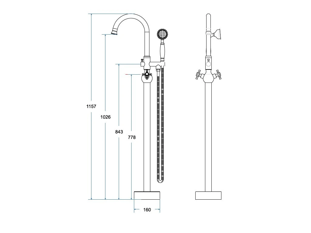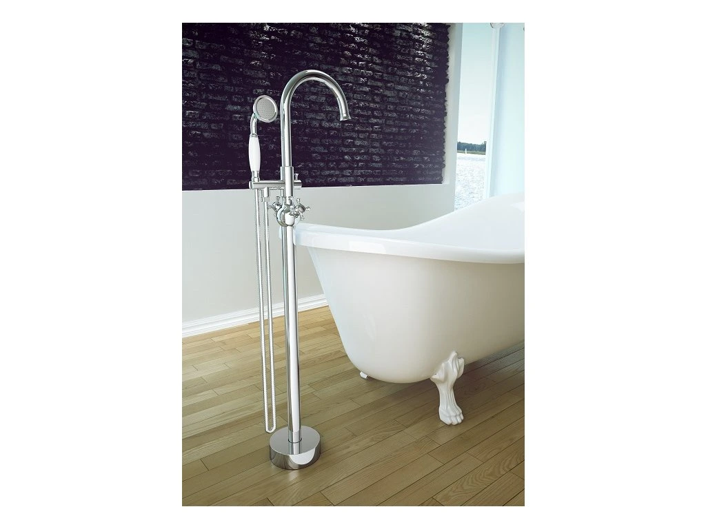 Retro designová vanová stojanová baterie v ojedinělém stylu je ideálním doplňkem k volně stojícím vanám v prostoru. Hodí se do retro koupelen, ale i do koupelen moderních. Tato baterie doladí Vaši koupelnu k dokonalému vzhledu.