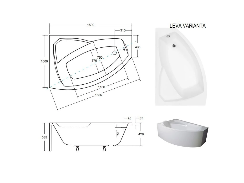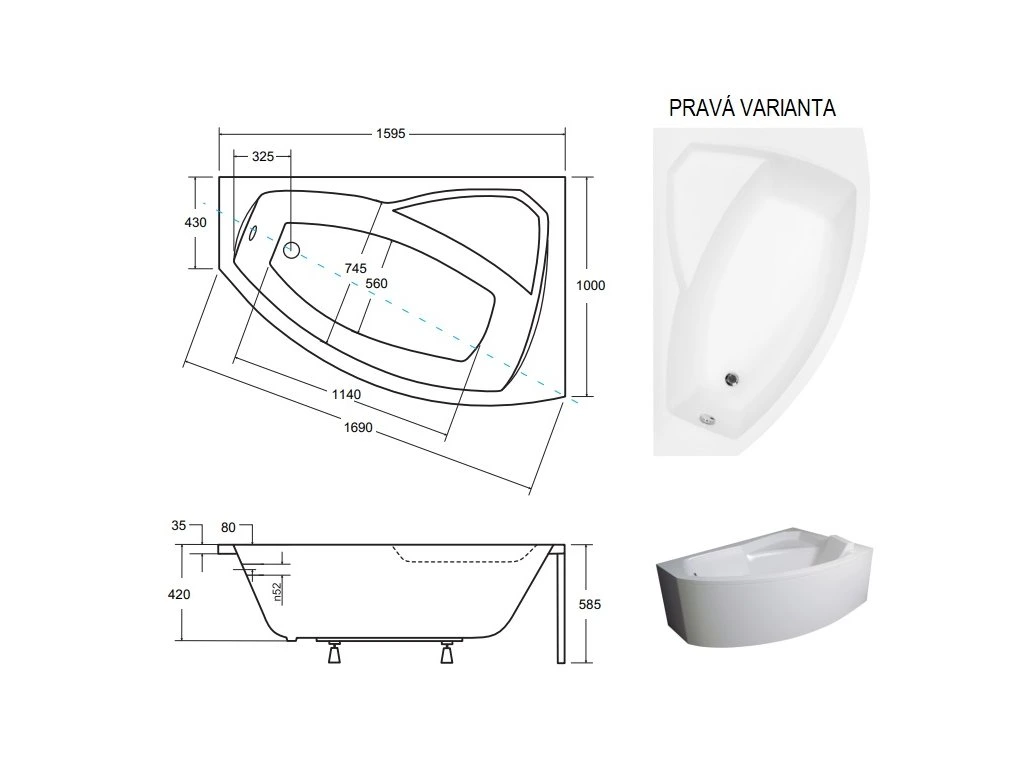 Besco Rima 160x100 akrylátová vana Délka vany: 160cm, Orientace: Pravá, WAR-160-NP