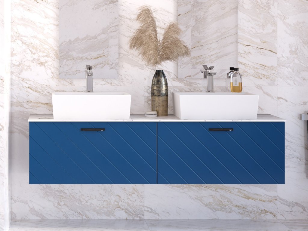 Populární elegantní design, široká barevná škála (čtyři barevné varianty - bílá matná, modrá matná, zelená matná a černá matná), kvalitní zpracování a moderní frézování na čele šuplíku, to je naše nová série FLOO. Součástí dvířek je i značkový tlumič dorazů pro tzv. tiché dovírání (soft-close). Nábytek dodáváme ve smontovaném stavu. Ke spodní skříňce si musíte doobjednat horní desku pod umyvadlo, kterou lze objednat ve třech barevných variantách (černá, mramor a dub).