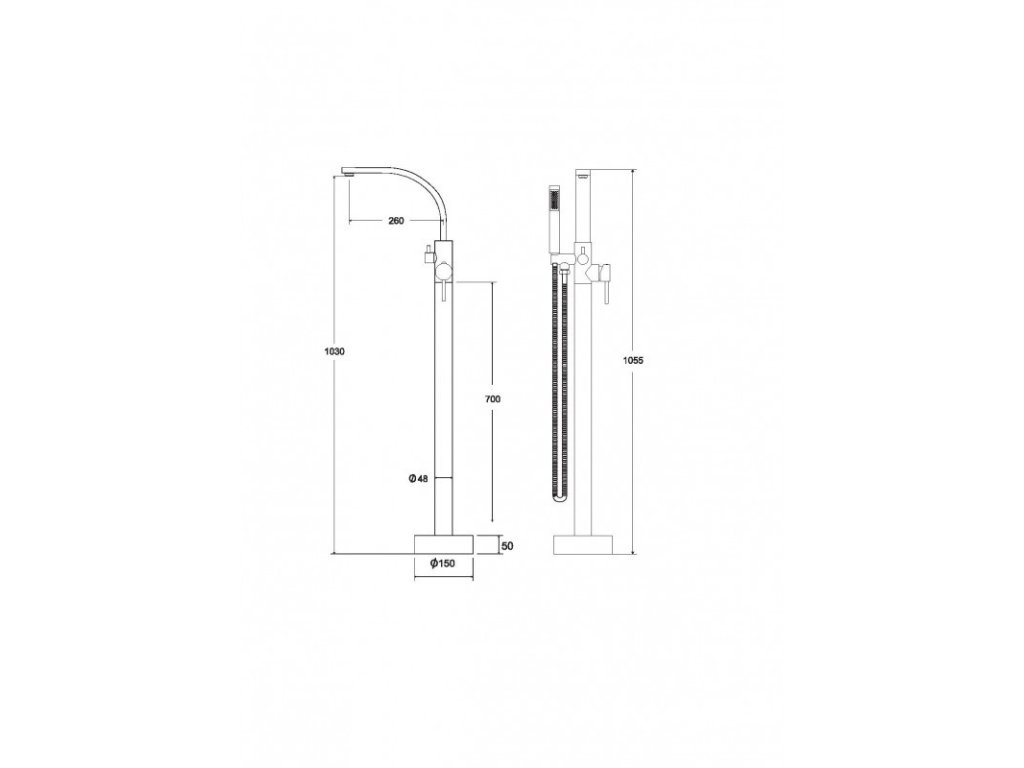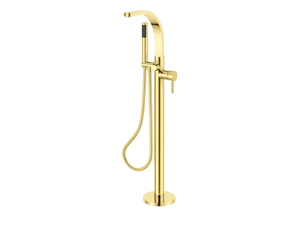 Vanová stojánková baterie je dodávána včetně příslušenství (sprchová růžice a hadice).