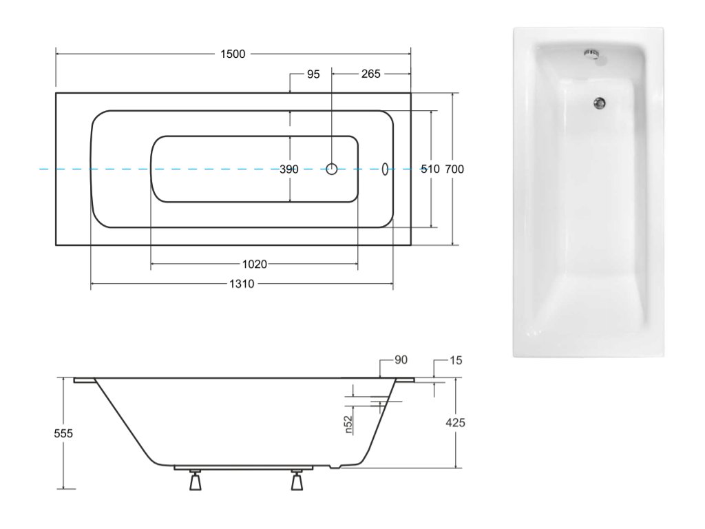 Besco Talia Slim 150x70 akrylátová vana, WAT-150-SL