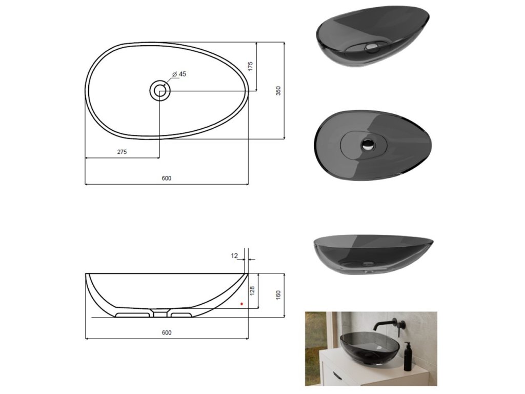 • 60 × 35 x 15 cm, hmotnost umyvadla 6 kg