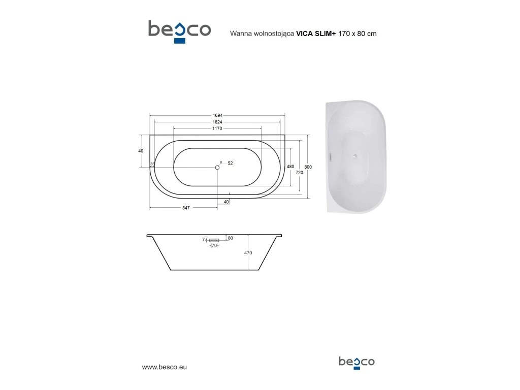 BESCO vana VICA SLIM+ bílá, sifon se štěrbinovým přepadem Barva sifonu - Zlatá, Nožičky k vaně - S nožičkami, Rozměr vany - 170 × 80 cm VANVIC170SLIMZ+OLVPINOZ