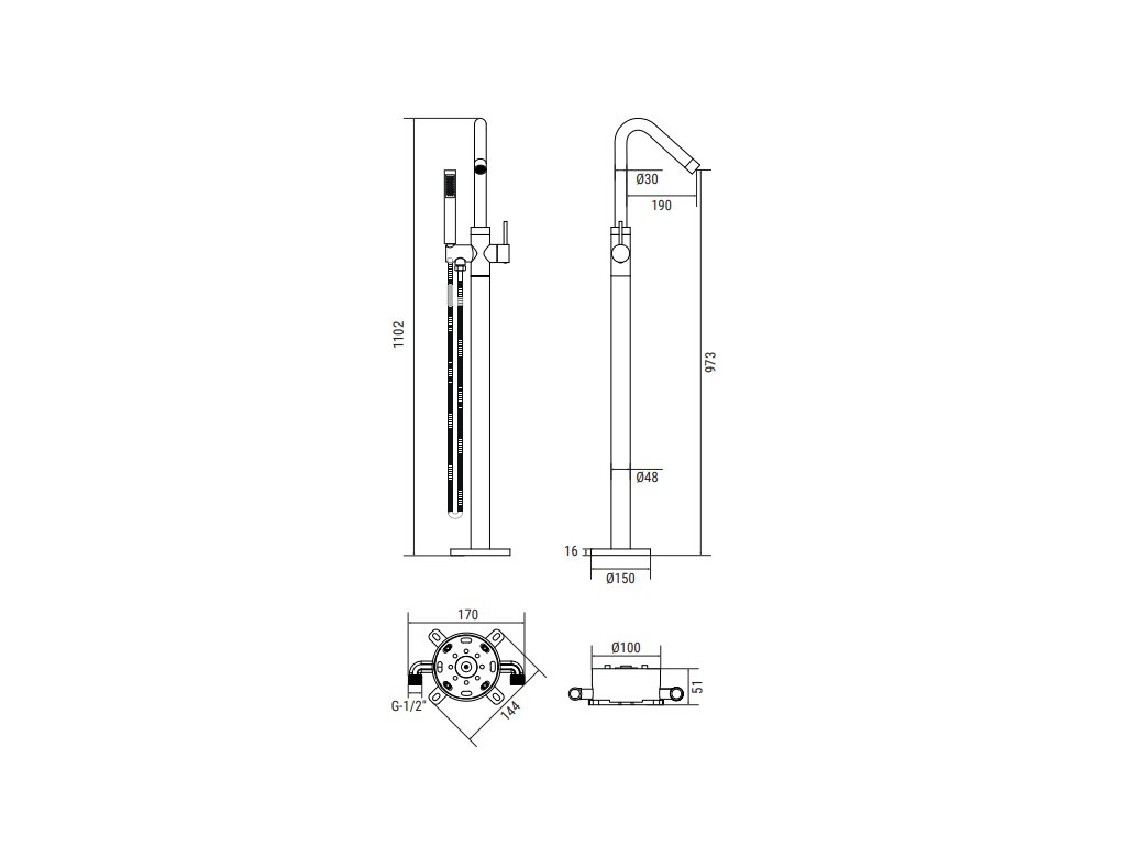 • Nastavitelné rameno držáku sprchové hlavice umožňuje nastavení do libovolné polohy