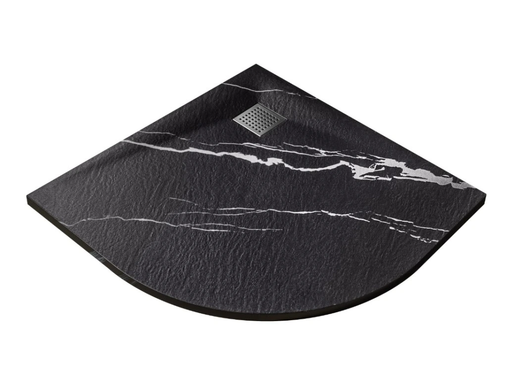 Besco Vexo 90x90 čtvrtkruhová sprchová vanička, marble black, VMB-90-90-P