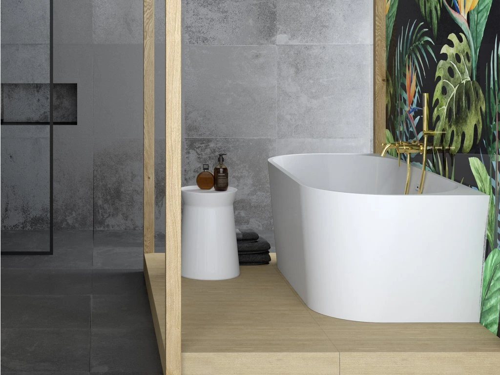 - designová volně stojící vana určena ke zdi
