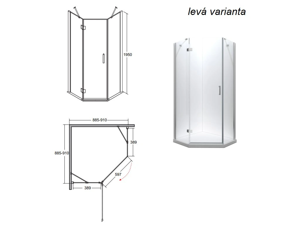 Besco Viva 90x90 pětiúhelníkový sprchový kout Orientace: Levá, Rozměr koutu: 90x90cm, V5L-90-195-CL