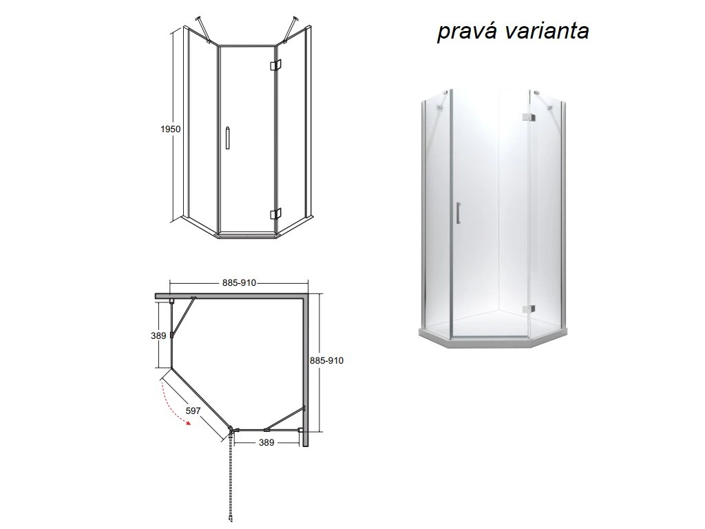 Besco Viva 90x90 pětiúhelníkový sprchový kout Orientace: Pravá, Rozměr koutu: 90x90cm, V5L-90-195-CP