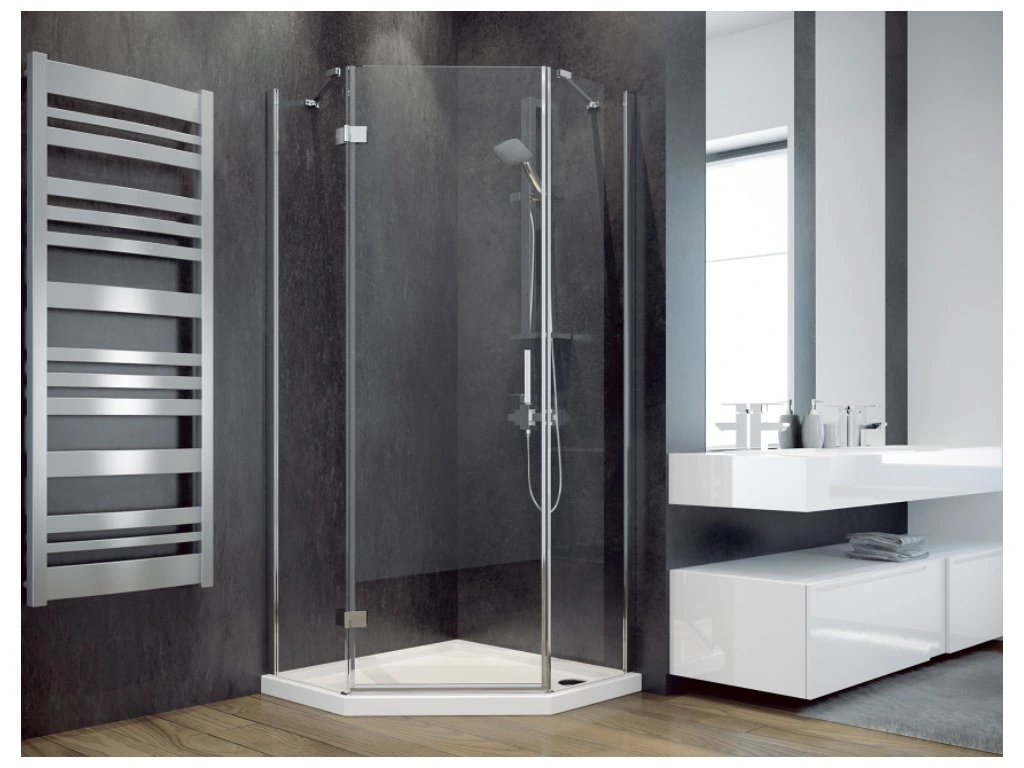 - designový pětiúhelníkový sprchový kout bez vaničky