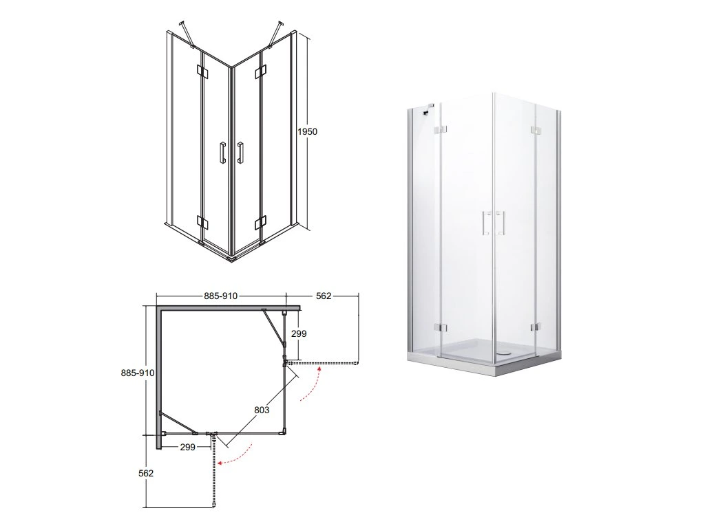 Bezrámový čtvercový sprchový kout s čirým sklem o tloušťce 8mm, na kterém je speciální úprava, která usnadňuje čištění skla. Sprchový kout se otevírá do prostoru a je možná pravá i levá varianta. Kvalitní chromované panty a magnetické těsnění zajistí špičkovou eleganci a funkčnost. Díky chromované okapničce se voda odvede vždy do vaničky.