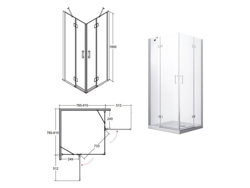 Bezrámový čtvercový sprchový kout s čirým sklem o tloušťce 8mm, na kterém je speciální úprava, která usnadňuje čištění skla. Sprchový kout se otevírá do prostoru a je možná pravá i levá varianta. Kvalitní chromované panty a magnetické těsnění zajistí špičkovou eleganci a funkčnost. Díky chromované okapničce se voda odvede vždy do vaničky.