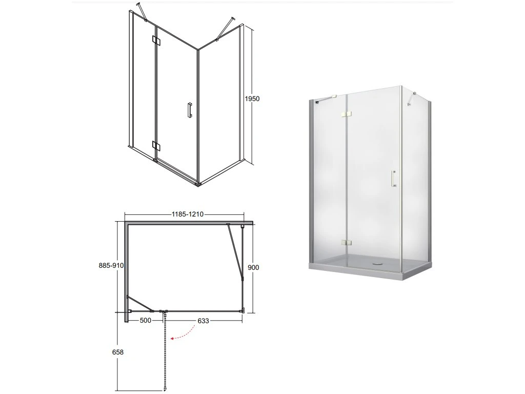 Bezrámový obdélníkový sprchový kout s čirým sklem o tloušťce 8mm, na kterém je speciální úprava, která usnadňuje čištění skla. Sprchový kout se otevírá do prostoru a je možná pravá i levá varianta. Kvalitní chromované panty a magnetické těsnění zajistí špičkovou eleganci a funkčnost. Díky chromované okapničce se voda odvede vždy do vaničky.