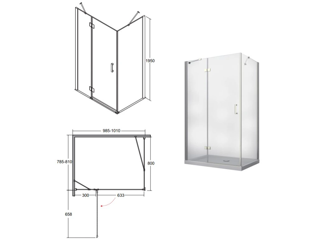 Bezrámový obdélníkový sprchový kout s čirým sklem o tloušťce 8mm, na kterém je speciální úprava, která usnadňuje čištění skla. Sprchový kout se otevírá do prostoru a je možná pravá i levá varianta. Kvalitní chromované panty a magnetické těsnění zajistí špičkovou eleganci a funkčnost. Díky chromované okapničce se voda odvede vždy do vaničky.