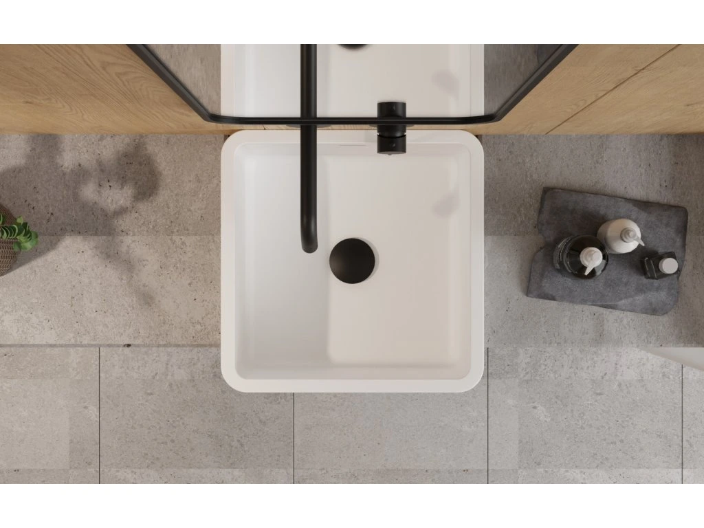 Umyvadlo AYGO standardně nemá otvor pro stojánkovou baterii, pro elegantní řešení můžete použít umyvadlové podomítkové baterie.