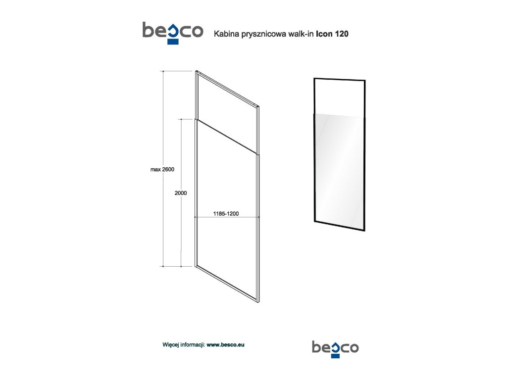 BESCO Walk-in sprchový kout ICON BLACK Barva rámu - Černá, Rozměr A - 120, Rozměr C - 200, Směr zavírání - Univerzální Levé / Pravé, Výplň - Čiré bezpečnostní sklo - 8 mm BCICON12BC