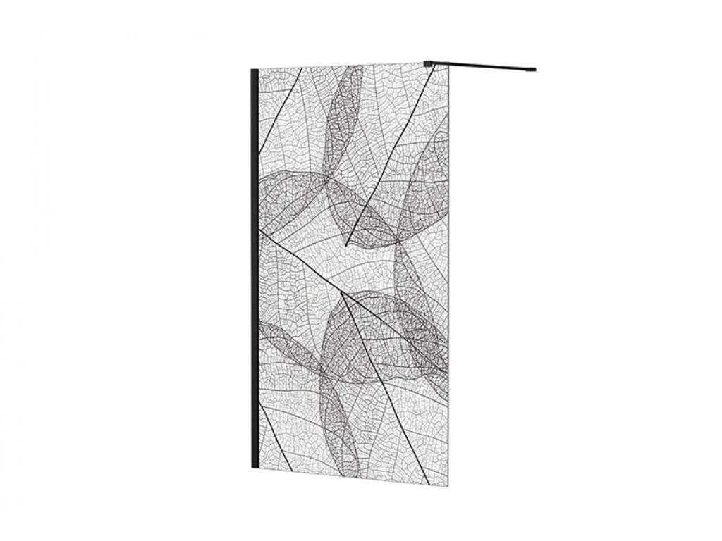 BESCO Walk-in sprchový kout LEAFY Barva rámu - Černá, Rozměr A - 100, Rozměr C - 200, Směr zavírání - Univerzální Levé / Pravé, Výplň - Malované bezpečnostní sklo - 8 mm BCLEAFY100