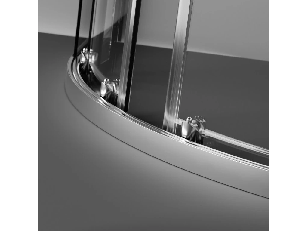 - designový čtvrtkruhový sprchový kout s chromovými profily včetně sprchové vaničky a sprchového sifonu
