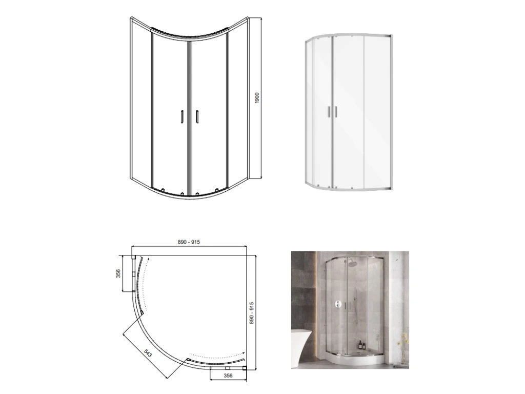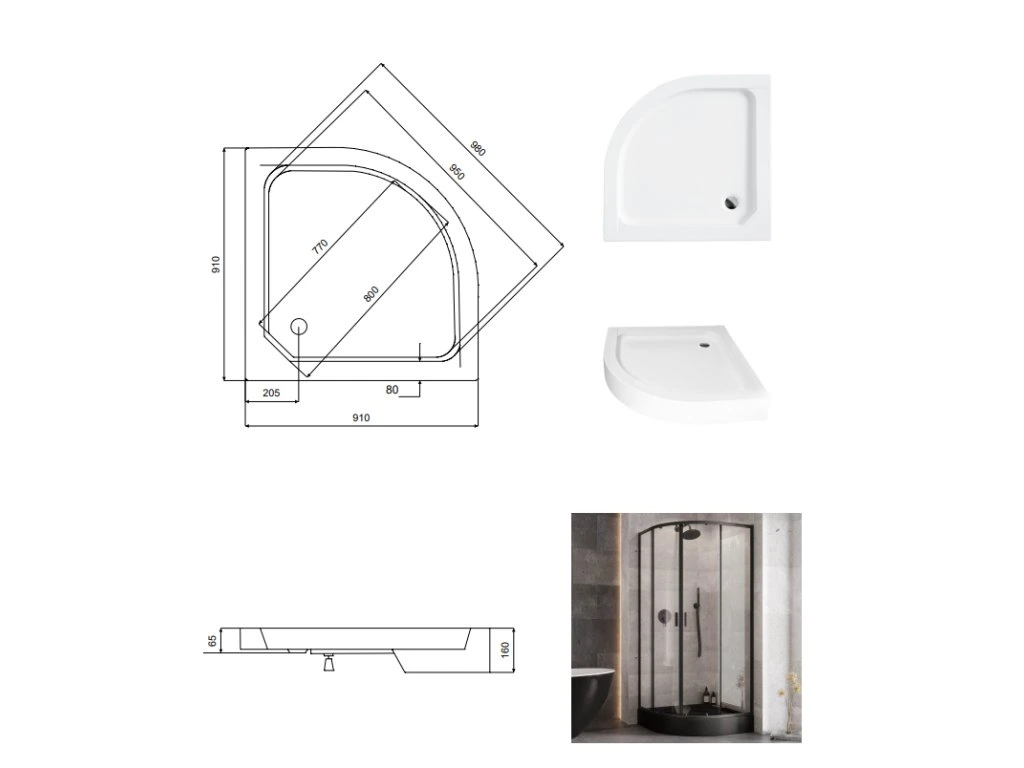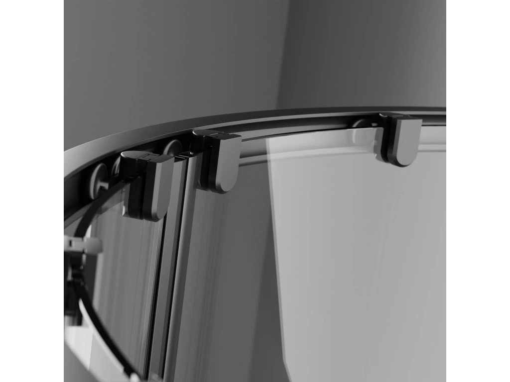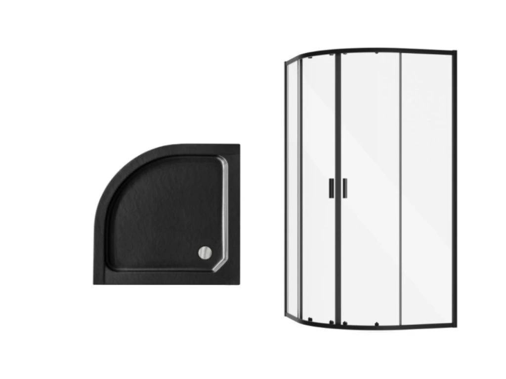 - designový čtvrtkruhový sprchový kout s černými profily včetně sprchové vaničky a sprchového sifonu
