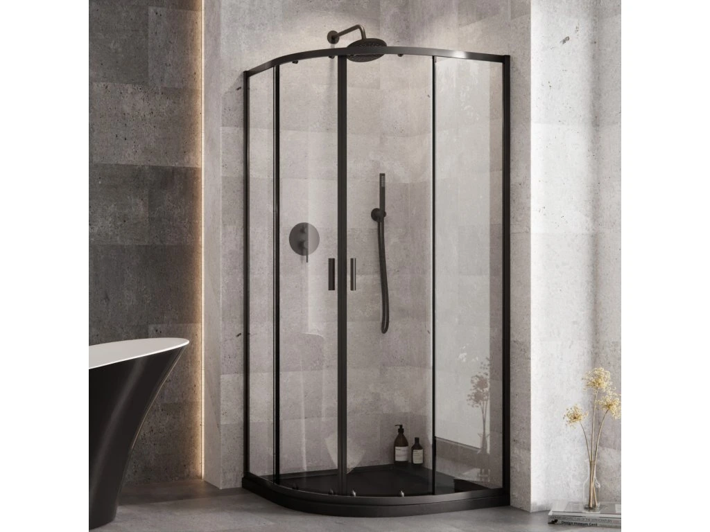 Besco Zarya čtvrtkruhový sprchový kout s vaničkou Axim, black Rozměr koutu: 90x90cm, ZB-AXS90-190