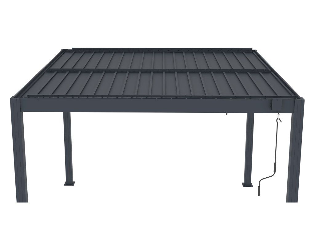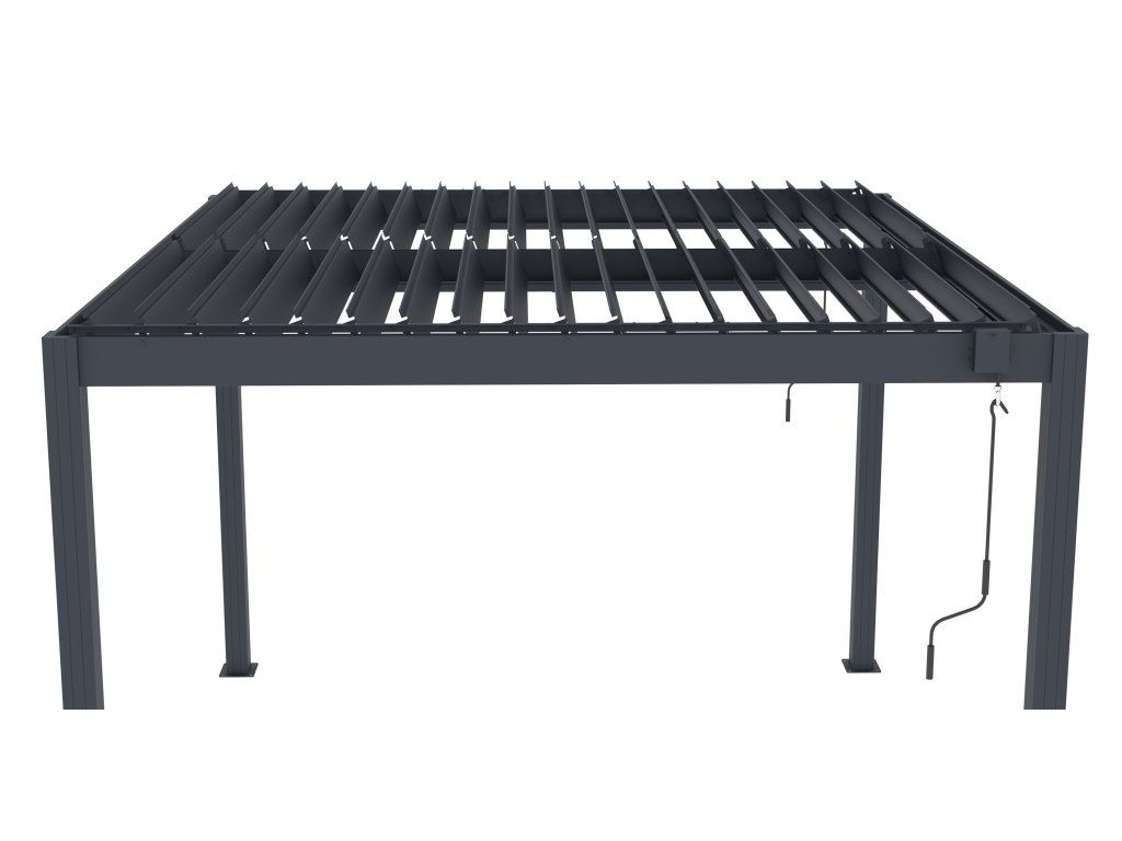 - Rotační střešní lamely pro manuální nastavení stínu, ventilace nebo ochrany před deštěm