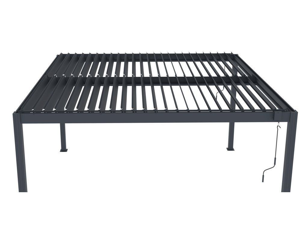 - Rotační střešní lamely pro manuální nastavení stínu, ventilace nebo ochrany před deštěm
