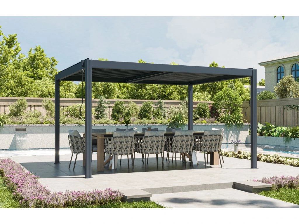 Manuálně nastavitelné lamely vám umožňují rychle reagovat na aktuální počasí. Otevřením zajistíte příjemné proudění vzduchu a světla, zavřením naopak spolehlivou ochranu před sněhem a deštěm. Díky možnosti nastavení lamel v rozsahu až 110° si nastavíte sklon tak, jak potřebujete vzhledem k poloze slunce na obloze. Pergola tak vytváří ideální prostor pro relaxaci i posezení s rodinou a přáteli, ať je venku jakékoliv počasí.