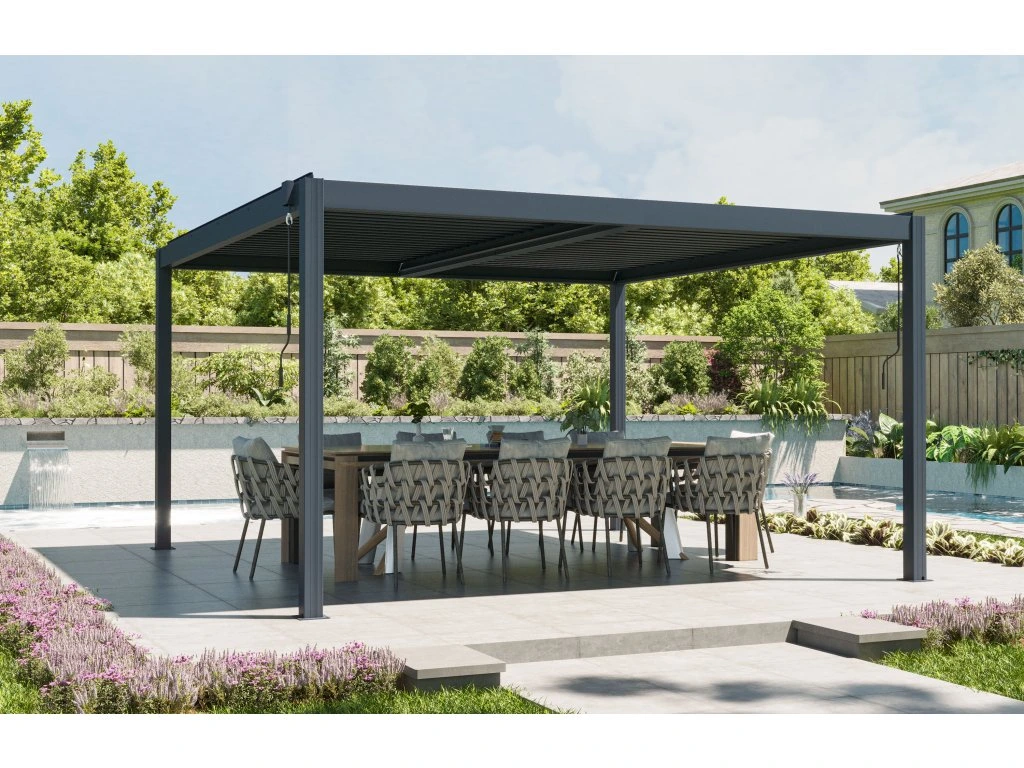 Manuálně nastavitelné lamely vám umožňují rychle reagovat na aktuální počasí. Otevřením zajistíte příjemné proudění vzduchu a světla, zavřením naopak spolehlivou ochranu před sněhem a deštěm. Díky možnosti nastavení lamel v rozsahu až 110° si nastavíte sklon tak, jak potřebujete vzhledem k poloze slunce na obloze. Pergola tak vytváří ideální prostor pro relaxaci i posezení s rodinou a přáteli, ať je venku jakékoliv počasí.